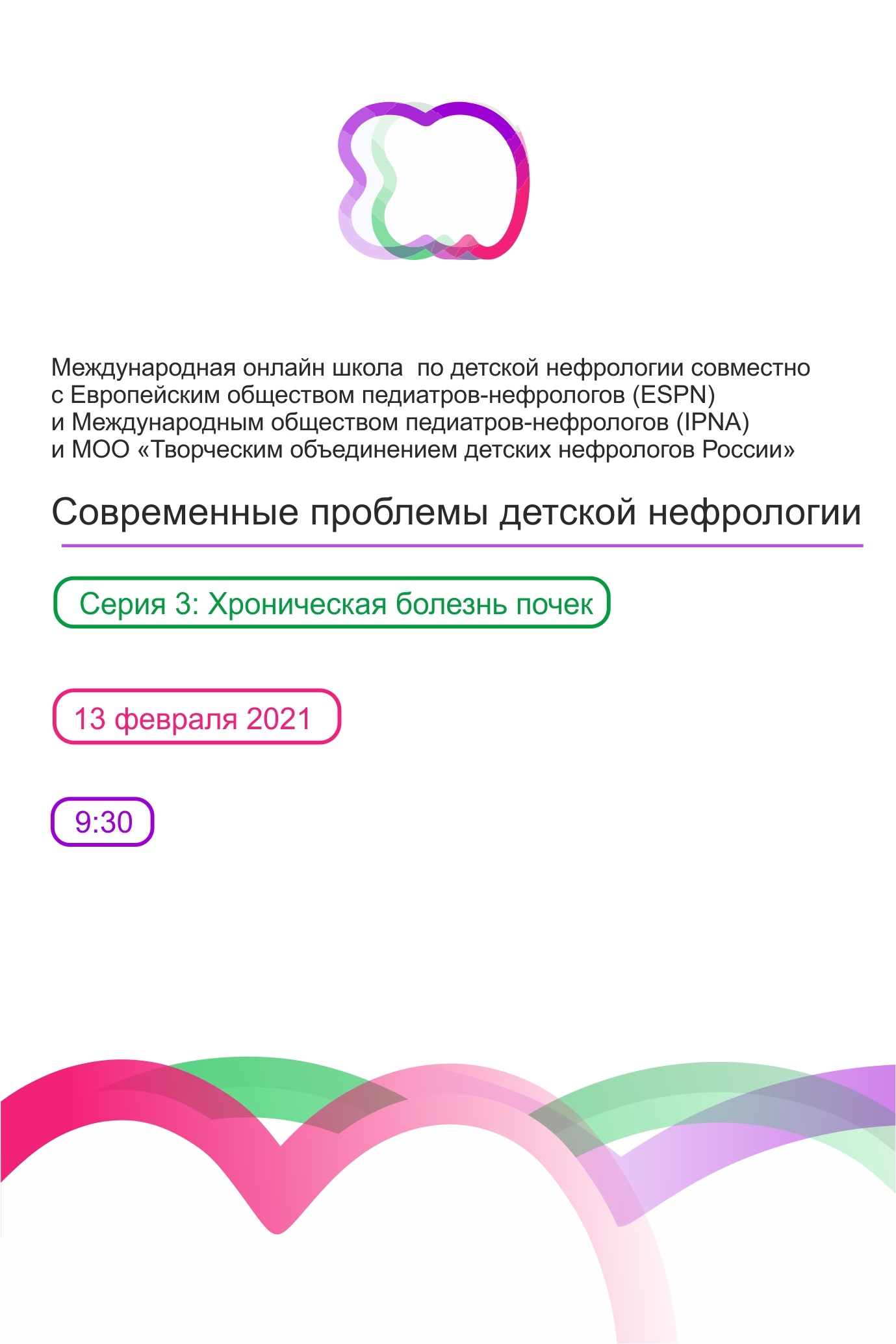 Приглашаем Вас принять участие в Международной онлайн школе совместно с Европейским обществом педиатров-нефрологов (ESPN), Международным обществом педиатров-нефрологов (IРNА) и МОО «Творческим объединением детских нефрологов России» «Современные проблемы детской нефрологии. Часть 3. Хроническая болезнь почек»